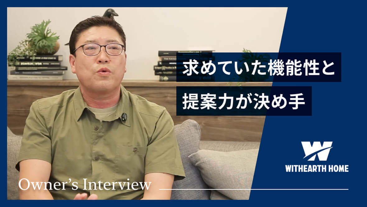 実家の老朽化に伴い、負担の少ない賃貸併用住宅を建てました。遮音性を重要視してメーカーを探していたところ、満足できる提案をいただきウィザースホームに決めました。さらに太陽光発電や床暖房もあり、快適な移住空間に大変満足しています。