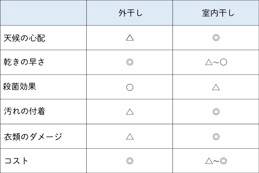 このように、室内干しと外干しそれぞれにメリットがあります。どちらの洗濯スタイルが合うのか、再確認してみましょう。