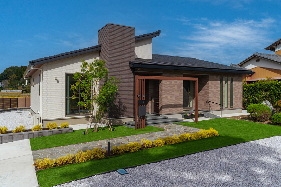ゆとりある敷地を活かした平屋住宅。家事や子育てが効率的に行える、回遊動線の住まいです。