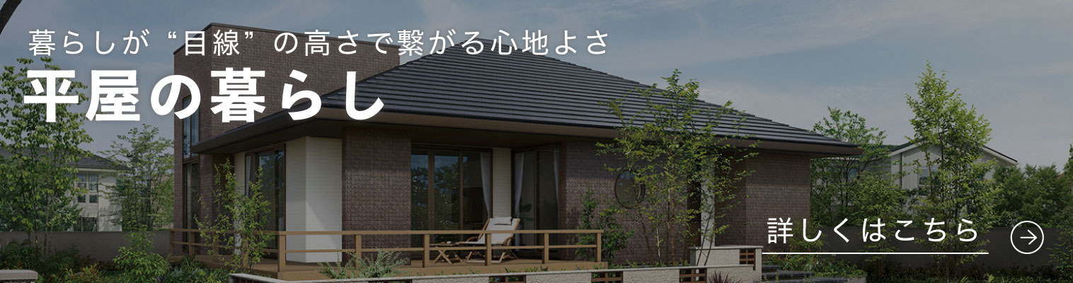 ゆったりとした空間づくりがしやすい平屋住宅。階段を昇り降りする必要がないため、生活動線をコンパクトにすることができます。階段がなくワンフロアで暮らしが完結することから、バリアフリー設計にも向いています。戸建てからマンションへの住み替えをお考えであれば、平屋住宅も選択肢に加えてみてはいかがですか?「自分たちの暮らしに合う平屋が建てられるのか」「どんな間取りが向いているのか」など、気になることがあれば、まずはお気軽にご相談ください。